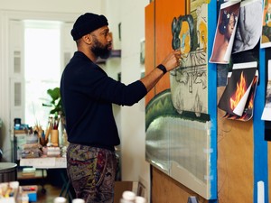 Nathaniel Mary Quinn in his studio, New York, 2025