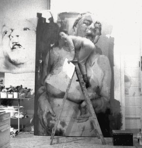 Jenny Saville working on Pause (2002–03), Tewkesbury Road, London, 2002. Photo: courtesy Jenny Saville Archives
